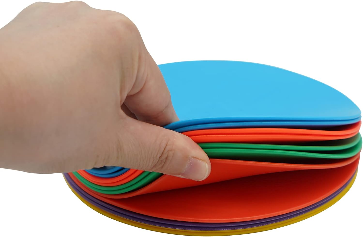 • Size: 6inch diameter (153mm), Thermoplastic Elastomer material, soft and flexible ring marker disks. The markers will stay firmly on the ground and won’t tear or rip.